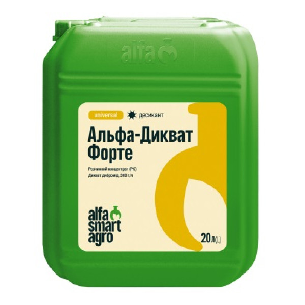Десикант Альфа-Дикват – це концентрований десикант контактної дії, призначений для підсушування культурних рослин, прискорення їх дозрівання, часткового знищення бур'янів і полегшення процесу комбайнування.