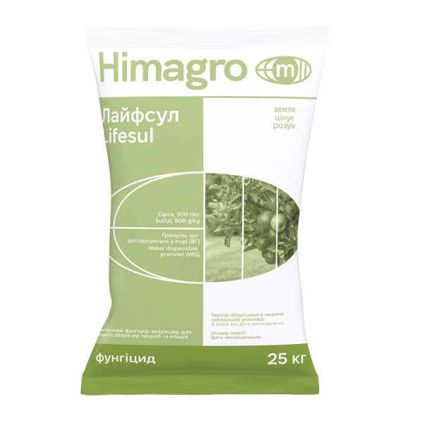 Лайфсул – контактний фунгіцид-акарицид на основі сірки, призначений для захисту плодових, овочевих і польових культур від грибкових хвороб та кліщів. Препарат утворює захисний шар на поверхні рослини та пригнічує розвиток патогенів і шкідників.