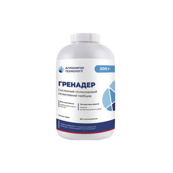 Гренадер – системний післясходовий гербіцид від компанії Агрохімічні технології, призначений для ефективного контролю однорічних і багаторічних дводольних бур’янів у посівах зернових культур та сульфо-стійкого соняшнику. Препарат швидко проникає у рослину, блокує точки росту бур’янів і припиняє їх розвиток уже в перші години після обробки.