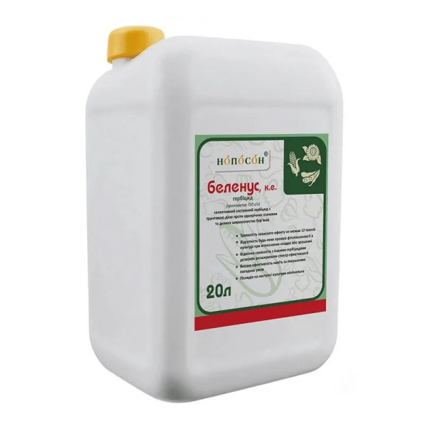 Беленус – післясходовий системний гербіцид для контролю широкого спектра однорічних дводольних та окремих злакових бур’янів в посівах кукурудзи, соняшнику та інших культур. Його дія спрямована на пригнічення росту бур’янів у період активної вегетації, що дозволяє захистити культуру у критичні фази розвитку і забезпечити високий урожай.